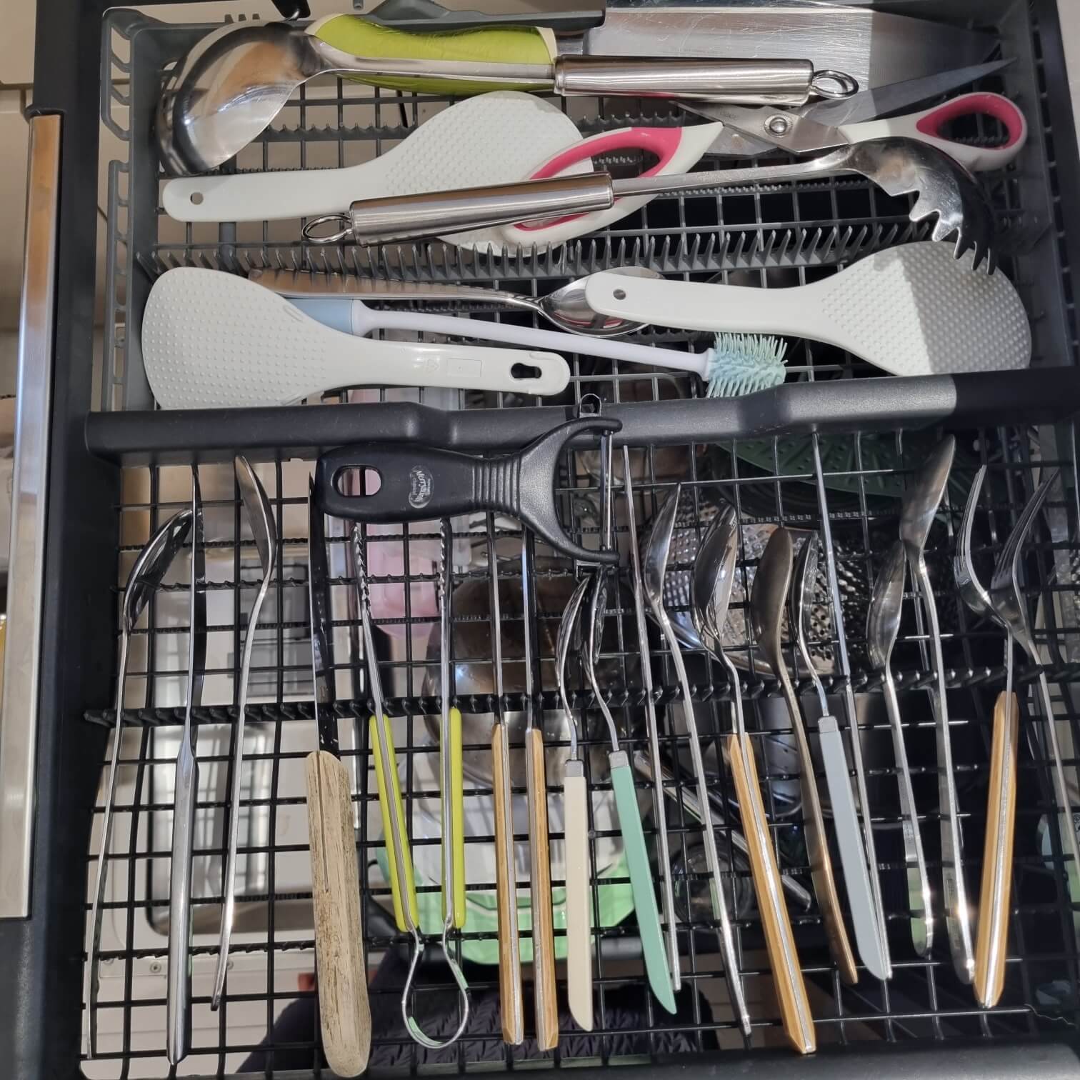 삼성식기세척기는 맨 아랫칸에 수저통처럼 생긴 곳에 넣게 되어 있는데 뭔가 수저가 서로 겹쳐서 잘 안 닦일 거 같은 생각이 들었는데 엘지식기세척기는 이렇게 깔끔하게 착착 꽂을 수 있어서 너무 마음에 듭니다