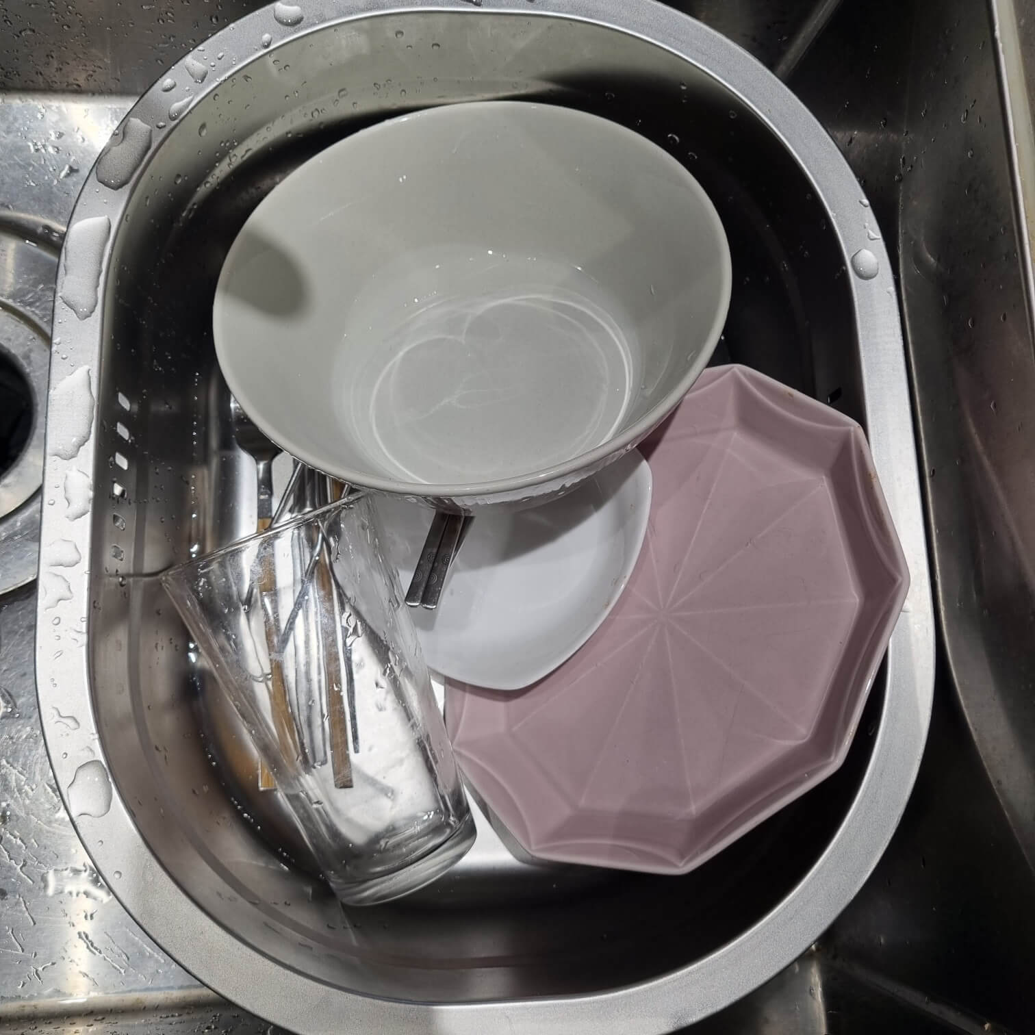 설거지거리가 적은 날은 이런 설거지통에 잠깐 헹궈서 넣어놓거나 설거지통에 퐁퐁 소량을 넣고 물을 받아 설거지거리를 넣어놓았다가 다음 설거지할 때 같이 돌리기도 합니다